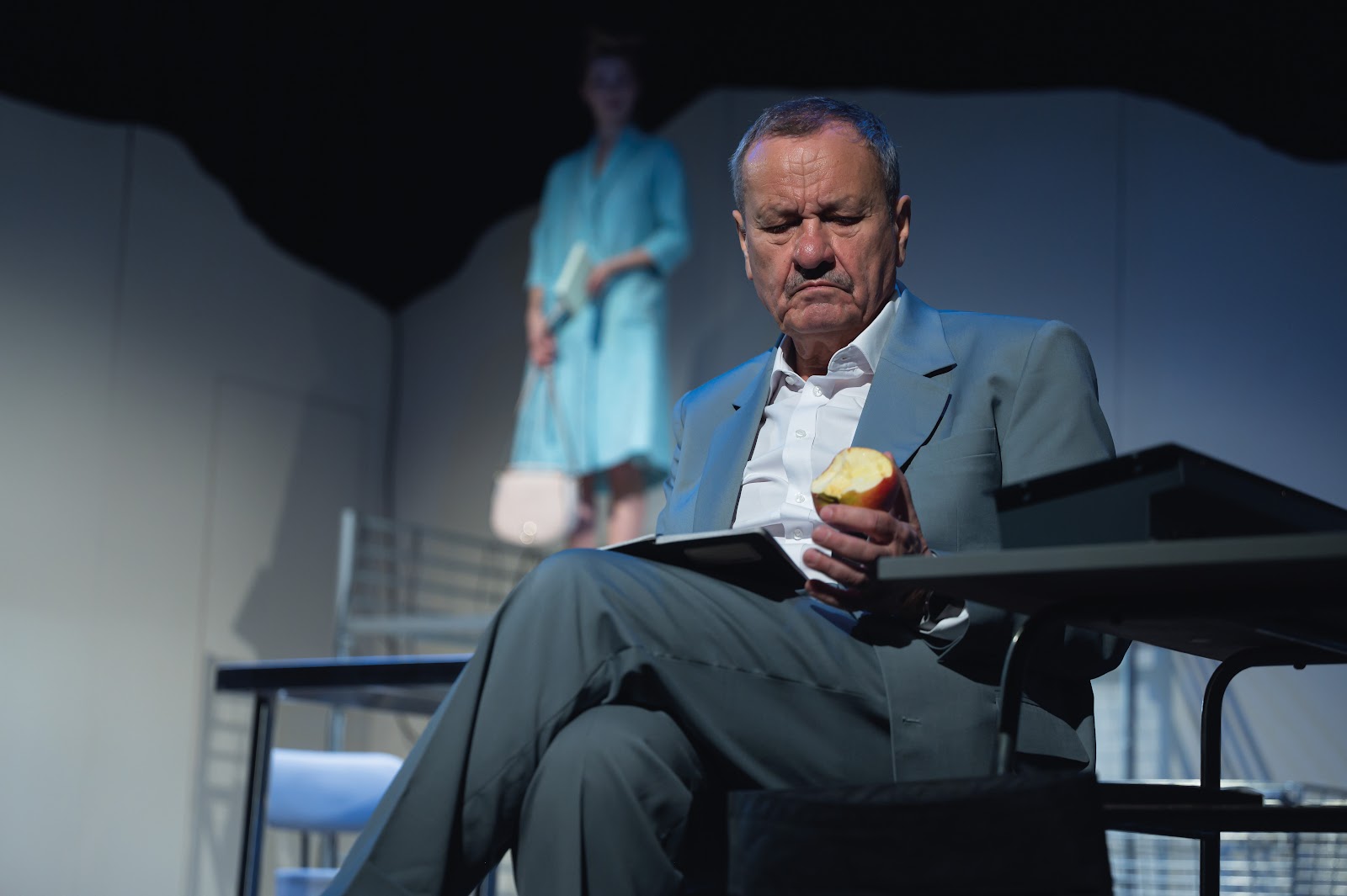 Skoro po celou dobu mne ale dost bavil Miroslav Krobot. Ač je oficiálně stále členem hereckého souboru Dejvického divadla, na své domovské scéně se v posledních letech příliš neprosazuje a momentálně je možné ho v Dejvicích vidět jen ve dvou titulech (z toho jeden je uváděn pouze příležitostně). Proto bylo milé setkat se po dlouhé době s jeho minimalistickým herectvím, které se oproti expresivnější Šoposké vyznačuje příjemně civilním podehráváním, jež skvěle svědčí třeba monologu o způsobu podání jedné repliky v jiné inscenaci. Teprve ve stylizovanějším závěru naráží Krobotův styl na své mantinely a balancuje na hraně topornosti, po většinu času je však právě jeho výkon klíčovou předností Štírů z února.